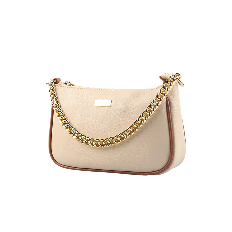 DUAL HANDLE CLASSIC BAG - CREAM & TAN