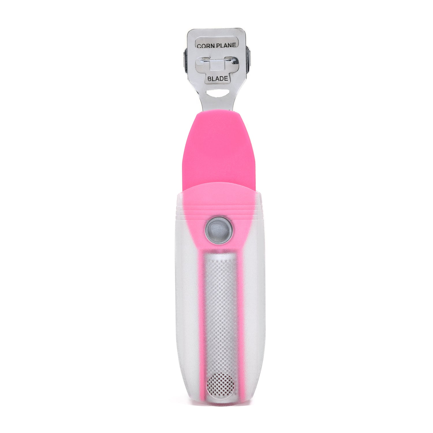 Used For: Removing calluses, filing rough skin, and foot grooming Material: Iron board plated with chromium, ABS, PP Colour: Pink Ideal For: Men & women, DIY pedicures Includes: 1 unit of 2-in-1 callus shaver and foot file