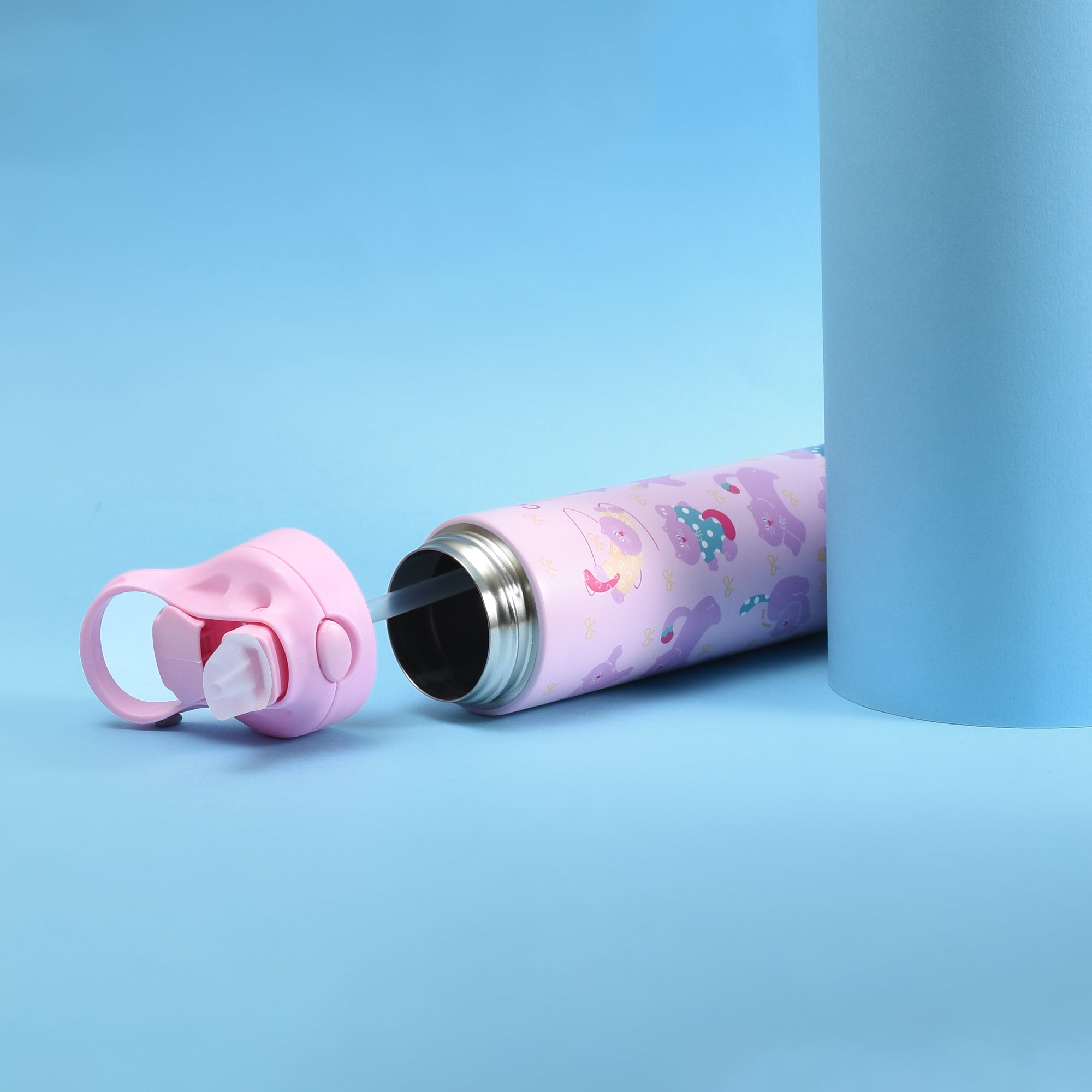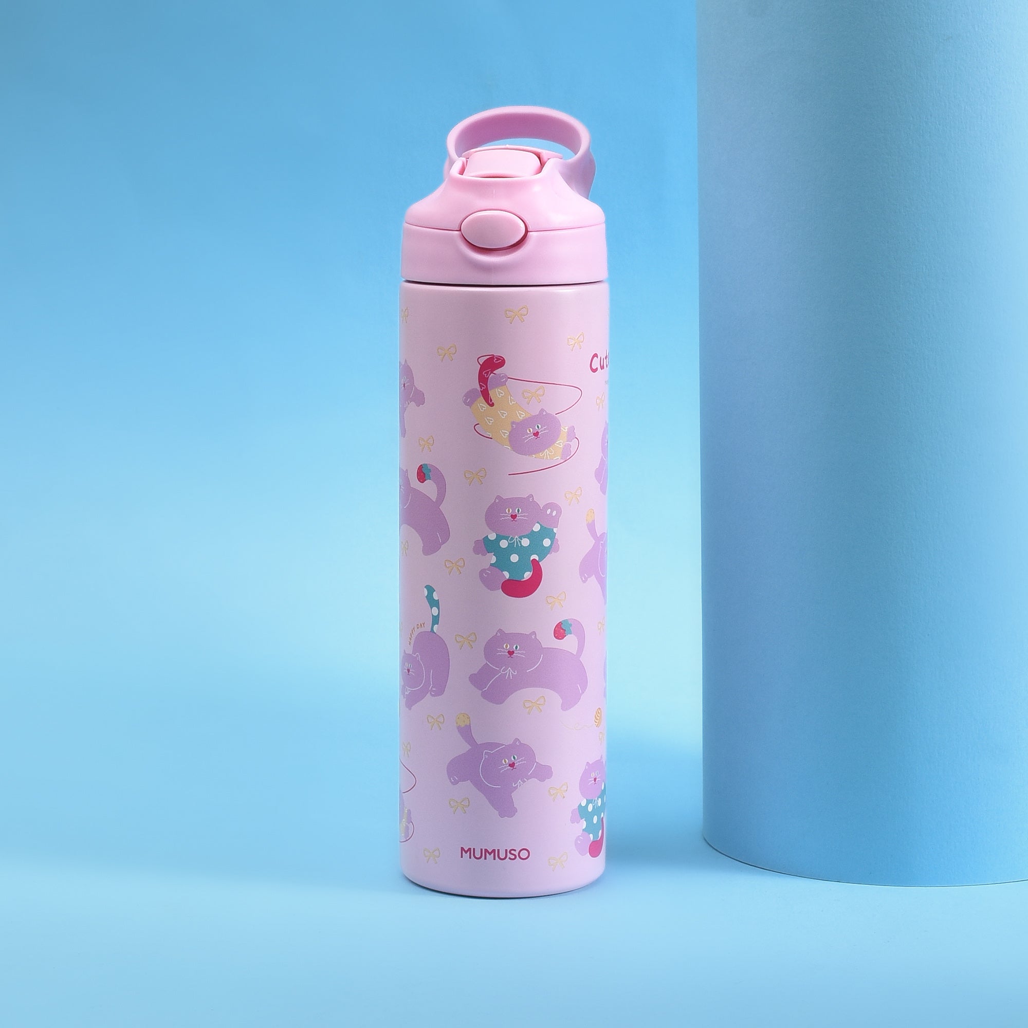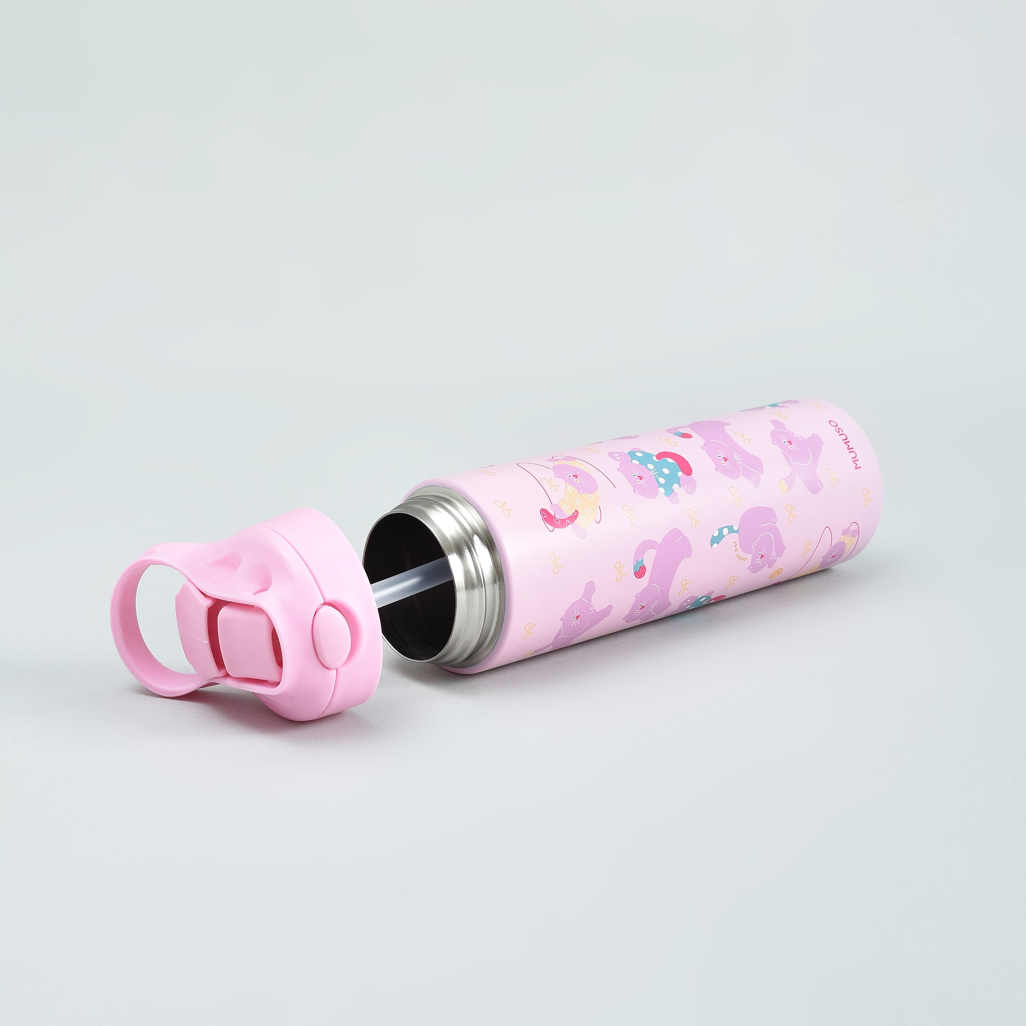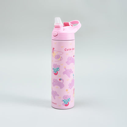 Team cat or team puppy? Either way, we’ve got you covered. Mumuso's super cute insulated kids bottles keep drinks at the right temperature for longer. The easy push button flip lid and soft silicone straw make them perfect for school. Stainless steel inside keeps drinks fresh, while the lightweight, sturdy body handles backpacks, lunch bags and the occasional drop with ease.