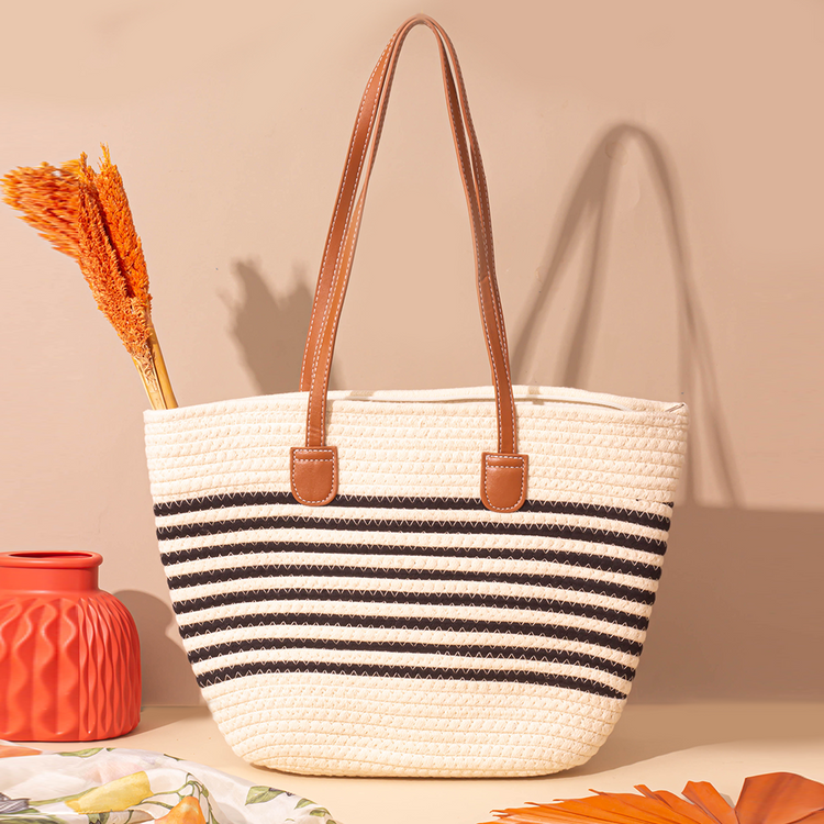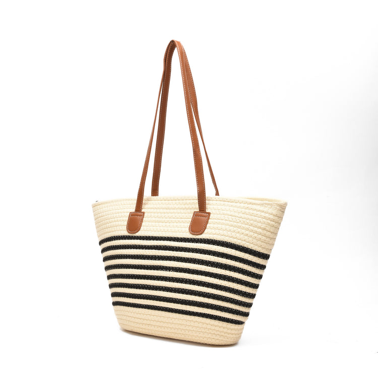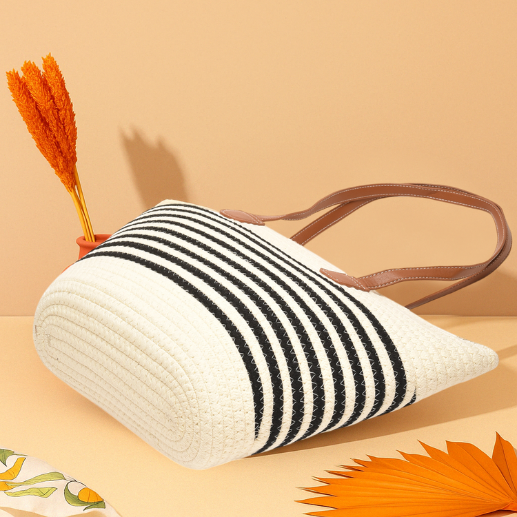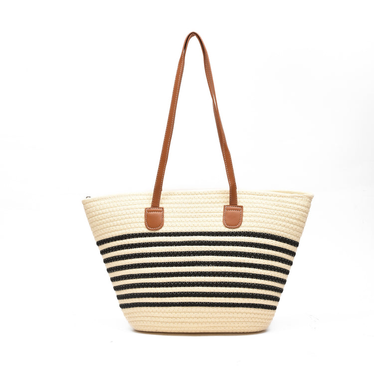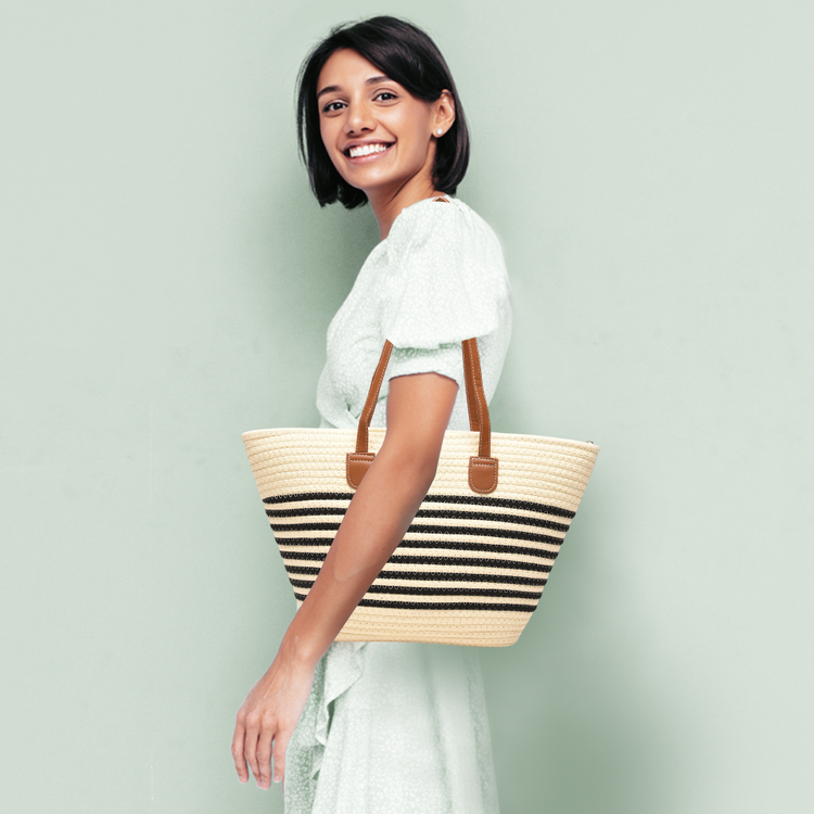 Mumuso's jute tote is your everyday essential with a touch of charm. The clean black and cream stripes give it that classic coastal feel — perfect for beach days, coffee runs, office days, or just elevating your everyday outfit. It's roomy enough for all your daily must-haves, and those sturdy faux leather handles? Built to last.