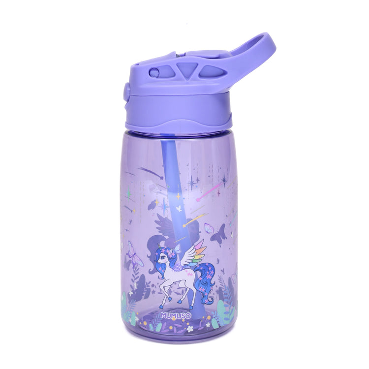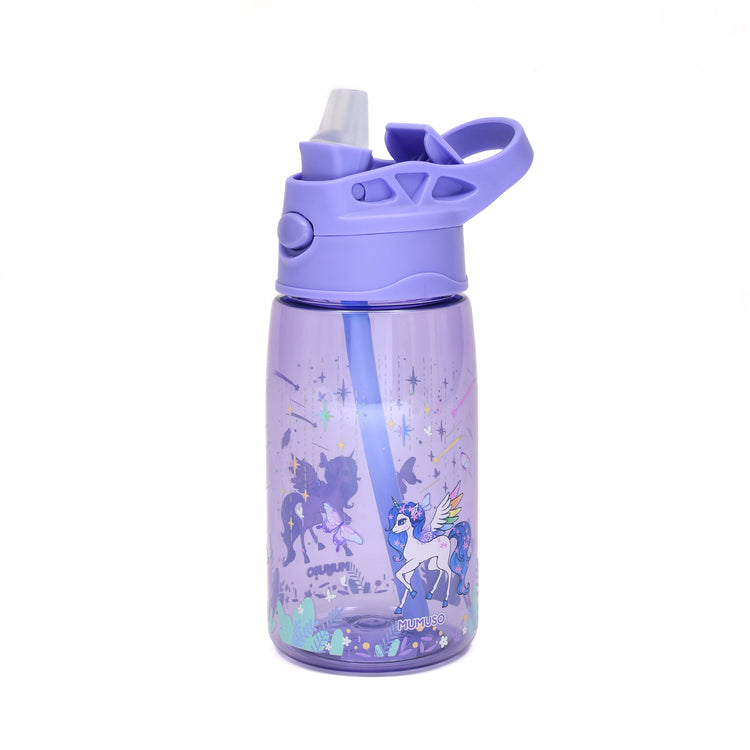 Designed in a dreamy lavender shade with a playful unicorn illustration, this bottle feels like it’s straight out of a fairytale. Children love using it because it’s light, easy to carry and fun to sip from, and parents love it because it’s durable and thoughtfully made. The flip-top lid opens smoothly, and the soft silicone straw makes sipping effortless.