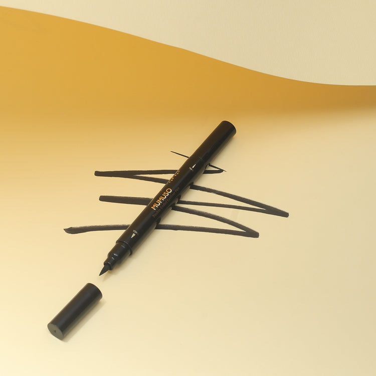 Unleash the power of precision with the MUMUSO Kill Black Double-Ended Eyeliner Pen. Designed with dual tips, one thin and sharp for sleek lines and one thick and soft for dramatic wings. It's intensely pigmented black color, smooth glide, and long-lasting formula ensure smudge-proof perfection from day to night.