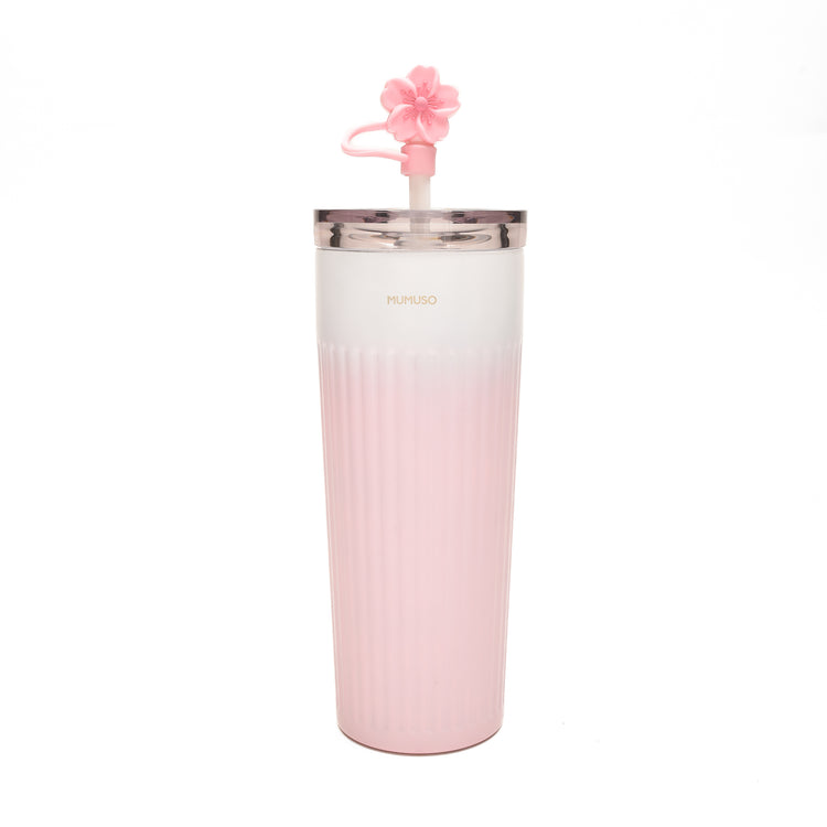 Cherry Blossom Collection Ribbed Insulated Tumbler with Straw - Pink/500 ml