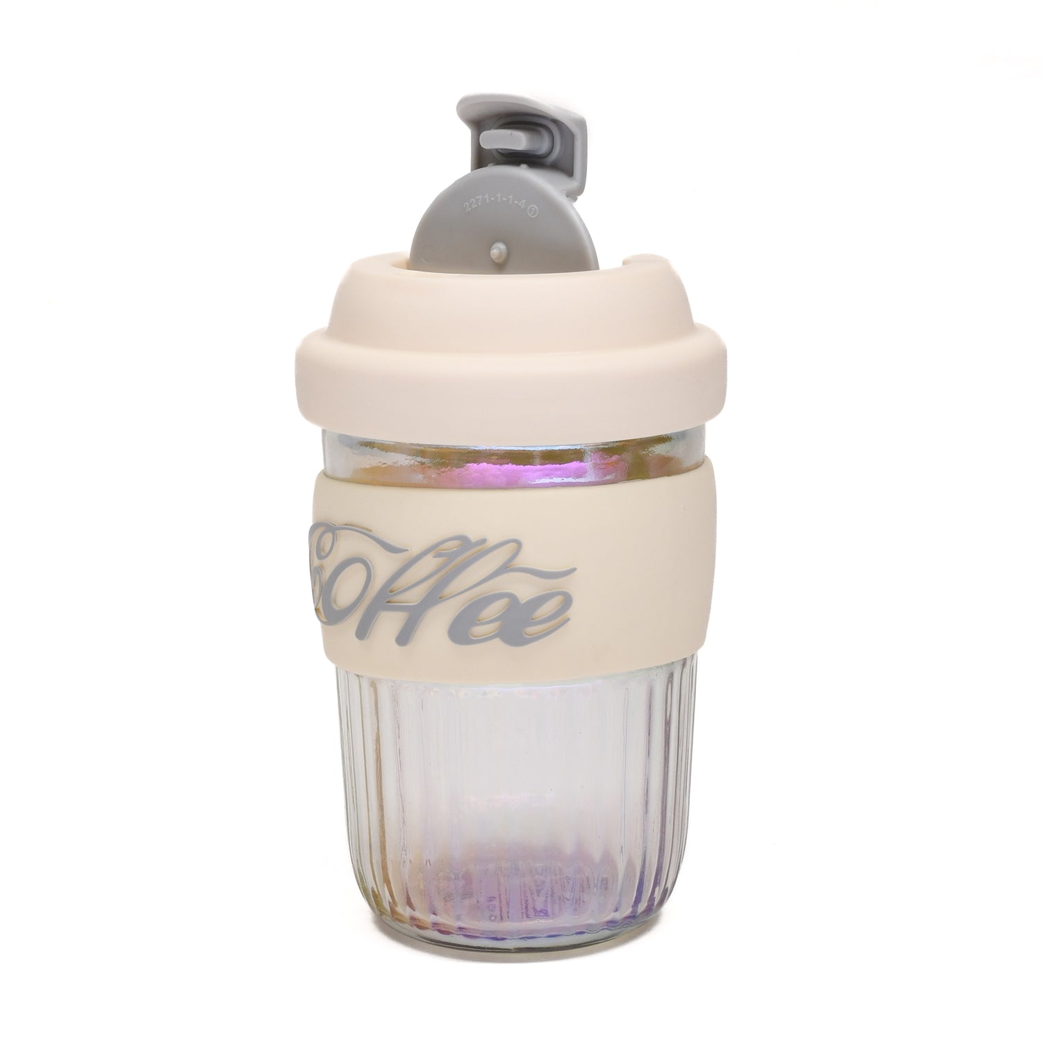 Dazzling Glass Coffee Tumbler with Lid and Sleeves-400ml