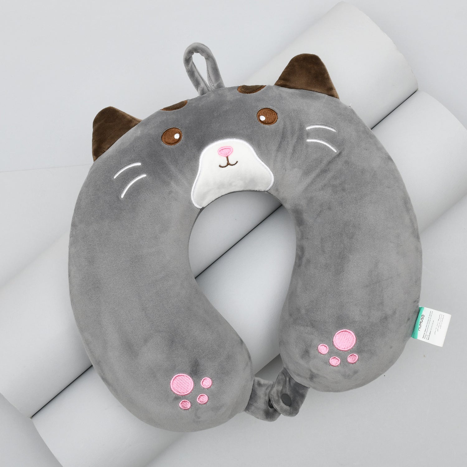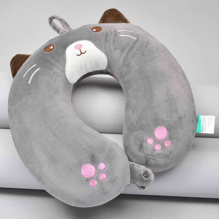 Memory Foam Grey Cat U Shaped Neck Pillow- 32 cm