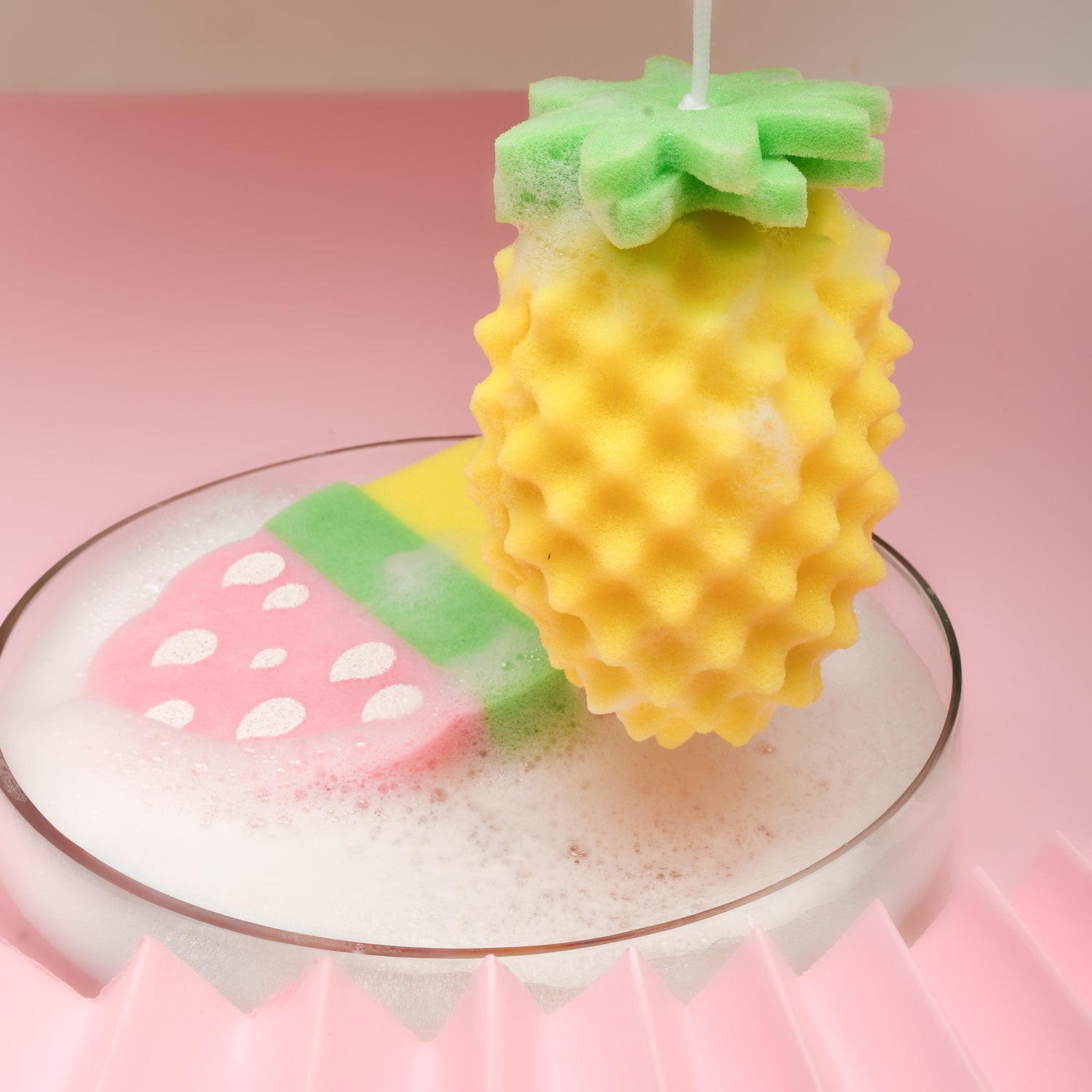 Pick pineapple for tropical vibes with its bumpy texture that grabs soap and buffs elbows smooth, or ice cream for a swirled strawberry-vanilla look that foams up body gels fast. Each has a sturdy cord for hooks, dries in minutes to fight mold, and fits small hands, perfect for quick morning routines or kids who need nudges to bathe. Affordable duo that adds personality to any bath caddy, no more drab puffs forgotten in corners.